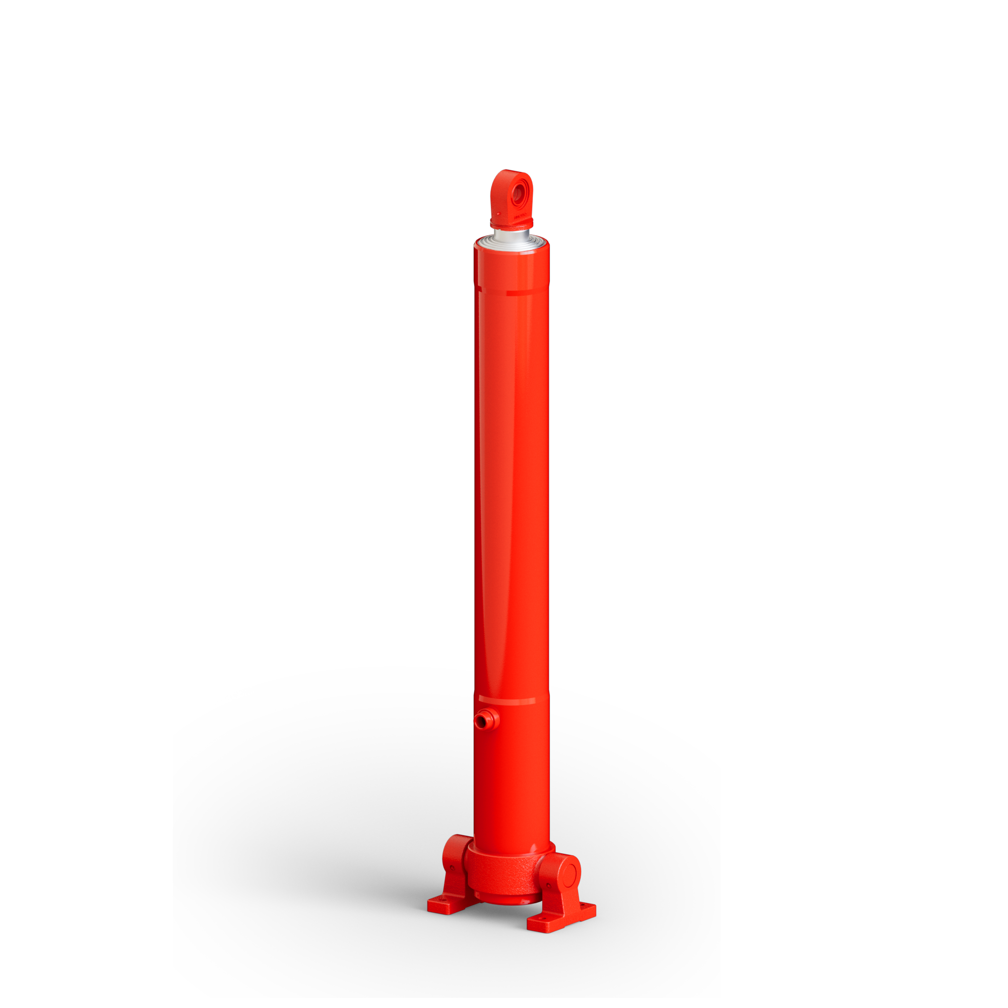 The MF-RP series is a front-end mounted cylinder, with lower trunnions and top eye mounting with a spherical bearing. It is specifically designed for vehicles with a front sloping tipping body. A version with a simple upper eye — without a swivel joint — is also available. The cylinder is supplied complete with two lower supports.